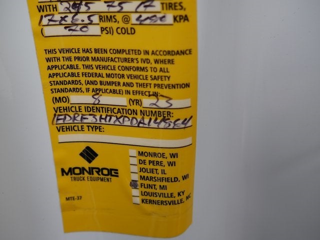 2023 Ford F-350SD XL DRW w/Dump Body 4WD 2D Standard Cab, 11' MTE D-Series Mild Steel 4-5 YD Capacity Rigid Side Dump Body, 10 Ga. Floor/Ends/Sides, 16 H Double Wall Sides, 22 H Tailgate, 50,000 PSI Yield Strength Steel Construction, Internal Dirt Shedding Top Rails & Tailgate, Single Lever Release Quick Drop Tailgate, Rubber Rear Flaps, 120V/400W Outlet, 17 Argent Painted Steel Wheels, 410 Amp Dual Alternators, Air Conditioning, AM/FM Stereo w/MP3 Player, Bright Grille, Chrome Front Bumper, Engine Block Heater, Halogen Fog Lamps, HD Vinyl 40/20/40 Split Bench Seat, Limited Slip w/4.10 Axle Ratio, Platform Running Boards, Rear View Camera & Prep Kit, Remote Start, Snow Plow Prep Package, SYNC 4 Communications & Entertainment System, XL Chrome Package. Oxford White Power Stroke 6.7L V8 DI 32V OHV Turbodiesel 10-Speed Automatic