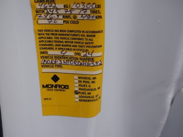 2024 Ford F-350SD XL DRW w/Dump Body 4WD 2D Standard Cab, 11' MTE D-Series Mild Steel 4-5 YD Capacity Rigid Side Dump Body, 10 Ga. Floor/Sides/Ends, 16 H Double Wall; Sides, 22 H Tailgate, Internal Dirt Shedding Top Rails & Tailgate, Single Lever Release Quick Drop Tailgate, Rubber Rear Flaps, Undercoated, US Tarp: Hand-Cranked Rewind Tarp w/Rear Pull Bar, Buyers 18x18x36 Aluminum Underbody Tool Box w/3 Point Latch, 120V/400W Outlet, 17 Argent Painted Steel Wheels, 410 Amp Dual Alternators, Air Conditioning, AM/FM Stereo w/MP3 Player, Bright Grille, Chrome Front Bumper, Dual 68 AH/65 AGM Battery, Engine Block Heater, Halogen Fog Lamps, HD Vinyl 40/20/40 Split Bench Seat, Limited Slip w/4.10 Axle Ratio, Platform Running Boards, Rear View Camera & Prep Kit, Remote Start, Snow Plow Prep Package, SYNC 4 Communications & Entertainment System, XL Chrome Package. Oxford White, Power Stroke 6.7L V8 DI 32V OHV Turbodiesel, 10-Speed Automatic.