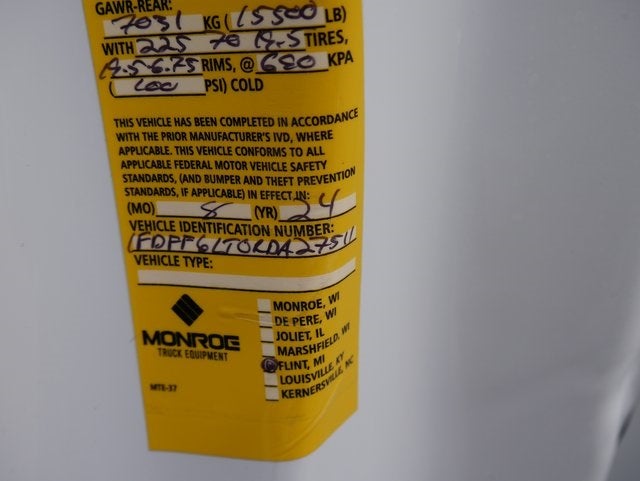 2024 Ford F-600SD XL DRW w/Dump Body 4WD 2D Standard Cab, 9' MTE D-Series Mild Steel 3-4 YD Capacity Rigid Side Dump Body, 10 Ga. Floor/Sides/Ends, 16 H Double Wall Sides, 22 H Tailgate, 50,000 PSI Yield Strength Steel Construction, Heavy Duty Front Bulkhead, Internal Dirt Shedding Top Rails and tailgate, Western-Style Understructure w/10Gauge Long-Members, Single Lever Release Quick Drop Tailgate, LED FMVSS108 Lights and Reflectors, Rubber Rear Flaps, 2-1/2 receiver in 1/2 Plate, Buyers 18x18x30 Aluminum Underbody Tool Box w/ 3-Point Latch, 120V/400W Outlet, 410 Amp Dual Alternators, ABS brakes, Air Conditioning, AM/FM Stereo w/MP3 Player, Bright Grille, Chrome Front Bumper, Electronic Stability Control, Engine Block Heater, Halogen Fog Lamps, HD Vinyl 40/20/40 Split Bench Seat, Limited Slip w/4.30 Axle Ratio, Low tire pressure warning, Platform Running Boards, Rear View Camera & Prep Kit, Remote Start, Snow Plow Prep Package, SYNC 4 Communications & Entertainment System, Wheels: 19.5 x 6.75 Argent Painted Steel, XL Chrome Package. Oxford White, Power Stroke 6.7L V8 DI 32V OHV Turbodiesel, 10-Speed Automatic.