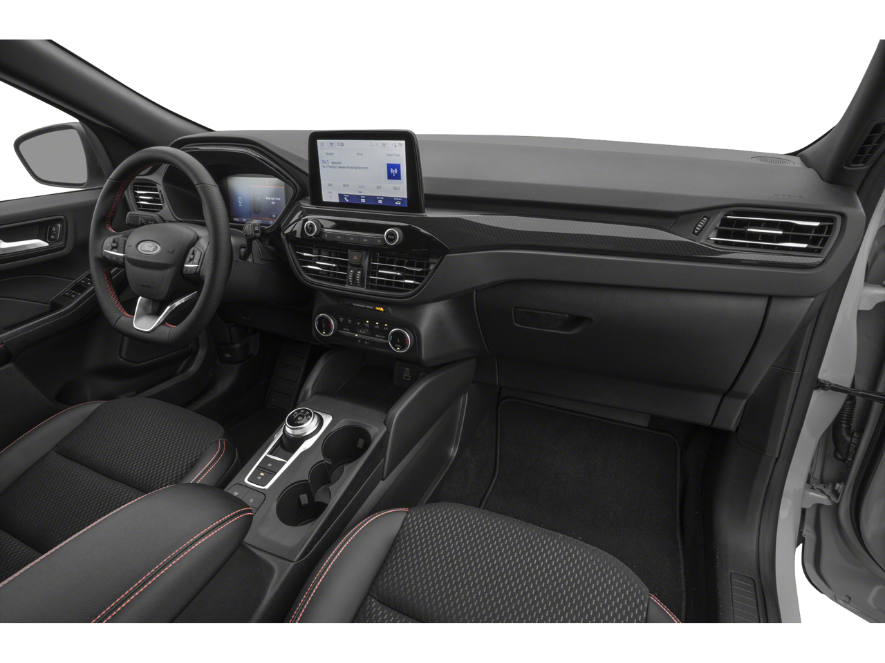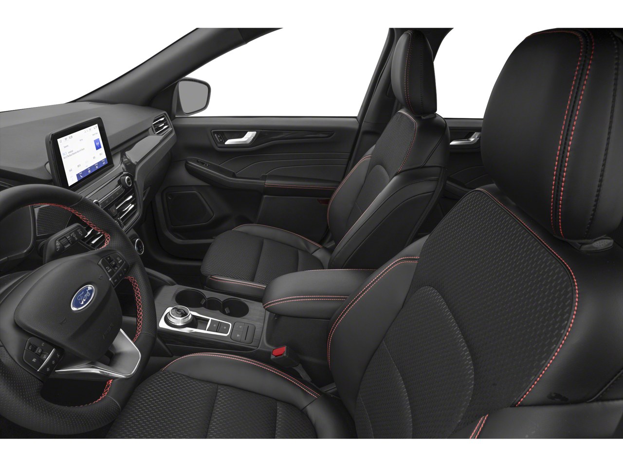 - Partial Vinyl/Cloth Front Sport Contour Bucket Seats with Red Stitching