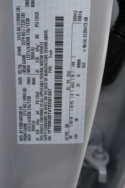 2026 Ford F-350SD Lariat 4WD 4D Crew Cab, 4-Way Adjustable Headrests, 410 Amp Dual Alternators, 6 Angular Bright Anodized Step Bars, Adaptive Cruise Control with Stop-and-Go, Automatic High Beam, BLIS with Cross-Traffic Alert, Chrome Door Handles, Chrome Exhaust Tip, Chrome Package, Dual AGM 68 AH Battery, Electronic-Locking with 3.55 Axle Ratio, Flow-Through Console, Ford Connectivity Package (1-Year Included), Front ActiveX Trimmed 40/Console/40 Seats, Front and Rear Parking Sensors, Front and Rear Wheel Well Liners, Front Dual Zone A/C, FX4 Off-Road Package, Head-Up Display, Heated Front Seats, Hill Descent Control, Lane-Keeping System, Lariat Premium Package, Lariat Ultimate Package, LED Roof Clearance Lights, Navigation System, Off-Road Specifically Tuned Shock Absorbers, Power-Deployable Running Boards, Power-Sliding Rear-Window with Defrost, Pre-Collision Assist, Privacy Glass, Pro Trailer Backup Assist, Pro Trailer Hitch Assist, Radio: B&O Unleashed Sound System by Bang & Olufsen, Rear Parking Sensors, SecuriCode Keyless Entry Keypad (driver's Side), SiriusXM with 360L, Snow Plow Prep Package, SYNC 4 with Enhanced Voice Recognition, Tailgate Step and Handle, Tough Bed Spray-in Bedliner, Twin Panel Power Moonroof, Unique Chrome Mirror Caps, Unique FX4 Off-Road Box Decal, Upfitter Switches, Ventilated Front Seats, Wheels: 20 Chrome PVD Aluminum. Avalanche, Power Stroke 6.7L V8 DI 32V OHV Turbodiesel, 10-Speed Automatic.