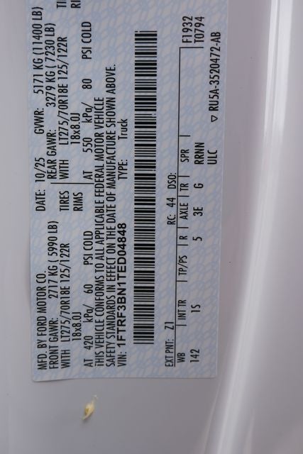 2026 Ford F-350SD XL 4WD 2D Standard Cab, 410 Amp Dual Alternators, Air Conditioning, Body-Color Front Bumper, Body-Color Rear Bumper, Cloth 40/20/40 Split Bench Seat, Color-Coordinated Full Carpet with Floor Mats, Drop-in Bedliner, Dual AGM 68 AH Battery, Exterior Parking Camera Rear, Ford Connectivity Package (1-Year Included), FX4 Off-Road Package, Hill Descent Control, LED Box Lighting, LED Fog Lamps, LED Roof Clearance Lights, Off-Road Specifically Tuned Shock Absorbers, Painted Grille, Platform Running Boards, Pro Power Onboard - 400W, Radio: AM/FM Stereo with MP3 Player, Snow Plow Prep Package, STX Appearance Package, SYNC 4, Tailgate Step and Handle, Unique FX4 Off-Road Box Decal, Upfitter Switches, Wheels: 18 Ebony Black Painted Aluminum. Oxford White, 7.3L V8 PFI SOHC 16V Federal 405hp, 10-Speed Automatic.