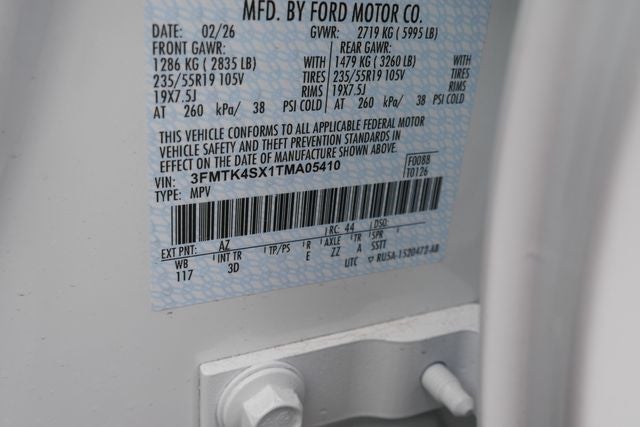 2026 Ford Mustang Mach-E GT AWD 4D Sport Utility, 1st and 2nd Row Floor Liners Without Carpet Mats, Black Painted Steel Roof, Cargo Area Cover, Cargo Floor Liner, Door, Wheel & Bumper Trim, Equipment Group 400A Standard Package, Exterior Parking Camera Rear, Ford Performance Front Seats, Front Dual Zone A/C, Heated Front Seats, Heated Perforated ActiveX Performance Seats, Interior Protection Package, Mobile Power Cord (120V/240V), Mustang Mach-E Gt Performance Upgrade, Mustang Mach-E Rally, Navigation System, Oxford White Steering Wheel, Door and IP Interior Trim, Power Liftgate, Radio: B&O Sound System by Bang and Olufsen, Rallycross-Tuned MagneRide Damping System, Rallysport Drive Mode, SiriusXM with 360L, Speed-Sensitive Wipers, Sport Pedals, SYNC 4A with Enhanced Voice Recognition, Unique Grille Shield in Dark Carbonized Gray, Wheels: 19 High Gloss Oxford White. Star White Metallic Tri-Coat, Electric Motor, Single-Speed Automatic.